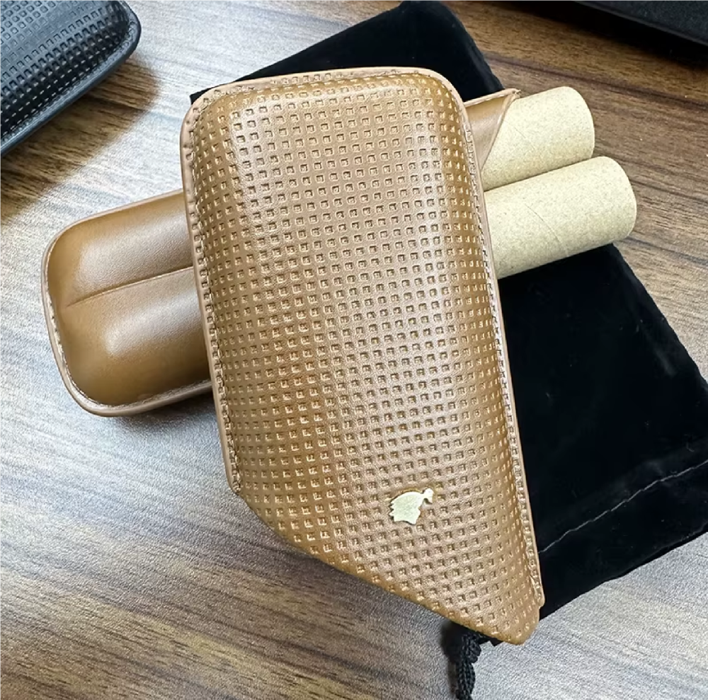 حافظة سيجار جلد بني ثنائي COHIBA Brown Leather Cigar Case