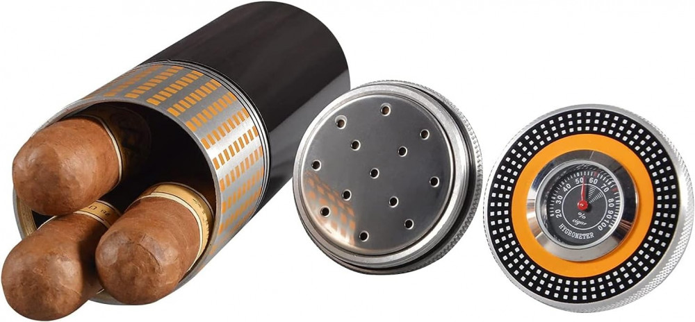 - يتكون مرطب الهواء من غطاءين منفصلين، أحدهما مرطب والآخر هو مقياس رطوبة، ويمكن للمرطب الخارجي إظهار رطوبة أنبوب السيجار الداخلي مباشرة