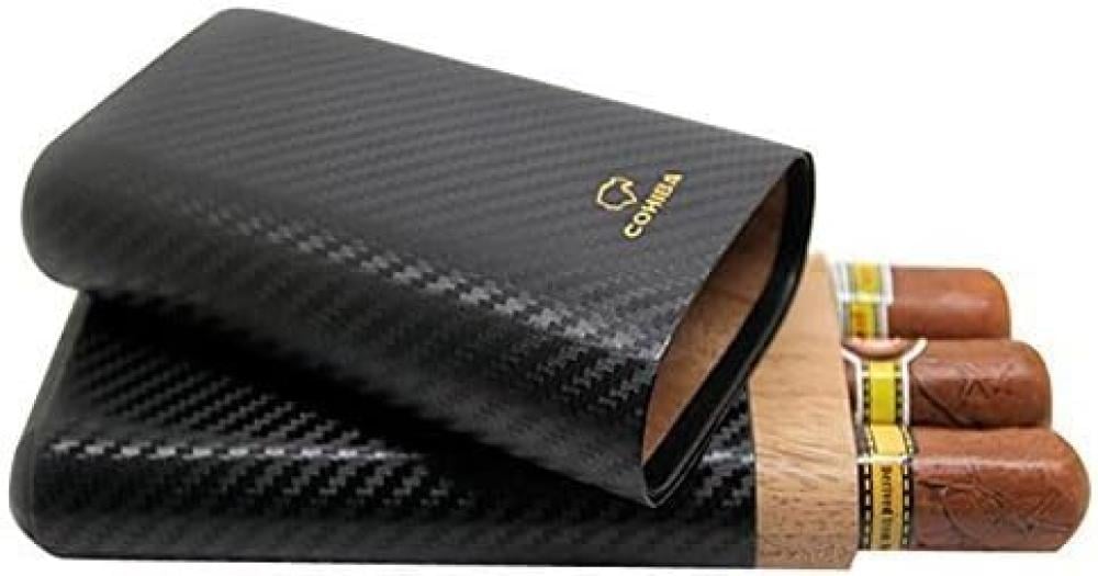 حافظة سيجار كاربون فايبر جلد ثلاثيي Carbon Fiber Leather 3 Tube Wooden Cigar Humidor