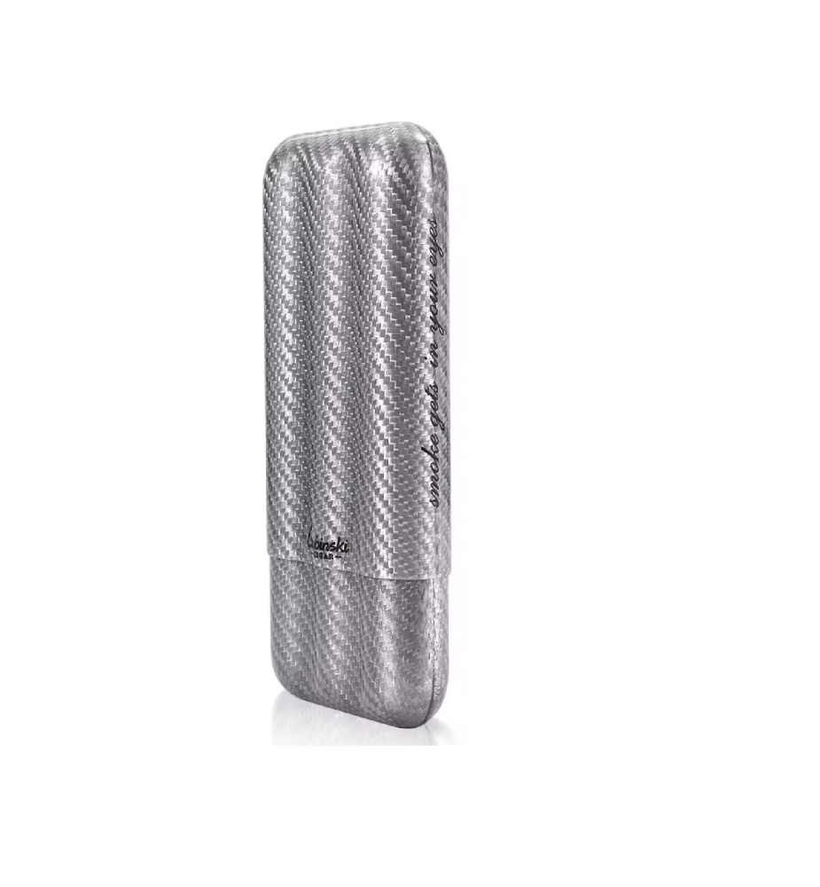 المواصفات:مصنوعة من ألياف الكربونالسعة: تحمل 3 سيجارالأبعاد: 150mm * 71mm * 31mmمقاس الحلقة: 57البراند: LUBINSKI