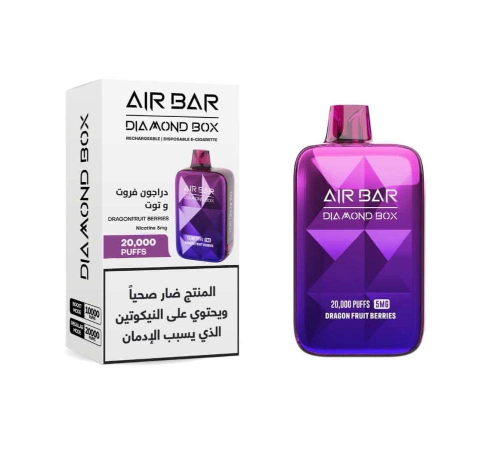 المواصفات:عدد السحبات: 20000نيكوتين : 50mgسعة التانك: 25mlشاشة ديجيتال تظهر عمر البطارية و كمية النكهة المتبقية3D Diamond Moldتصميم مانع للتسربقوة البطارية: 800mAhنوع الشاحن: Type-C