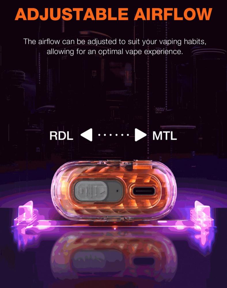 - شاشة ديجيتال تظهر عمر البطارية و كمية النكهة المتبقية