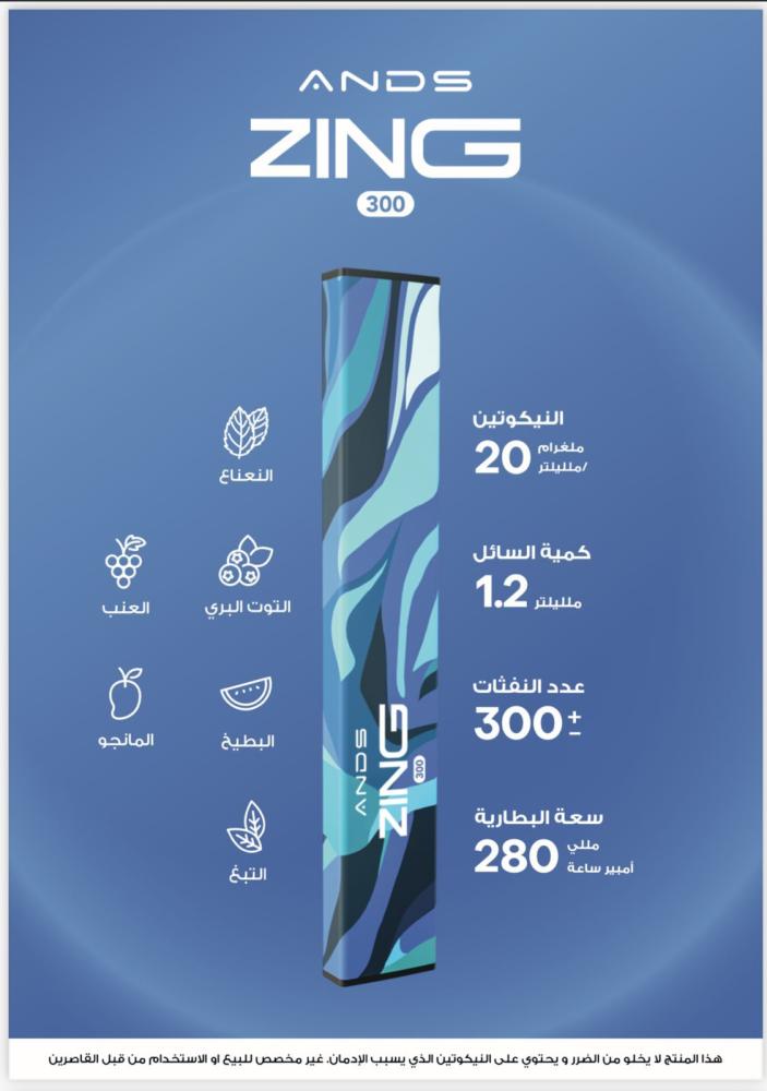 سحبة جاهزة نعناع ZING Mint 300 Puffs Disposable
