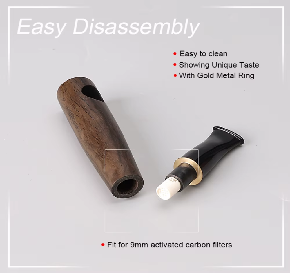 غليون خشب أبانوس Ebony Straight Wood Tobacco Pipe