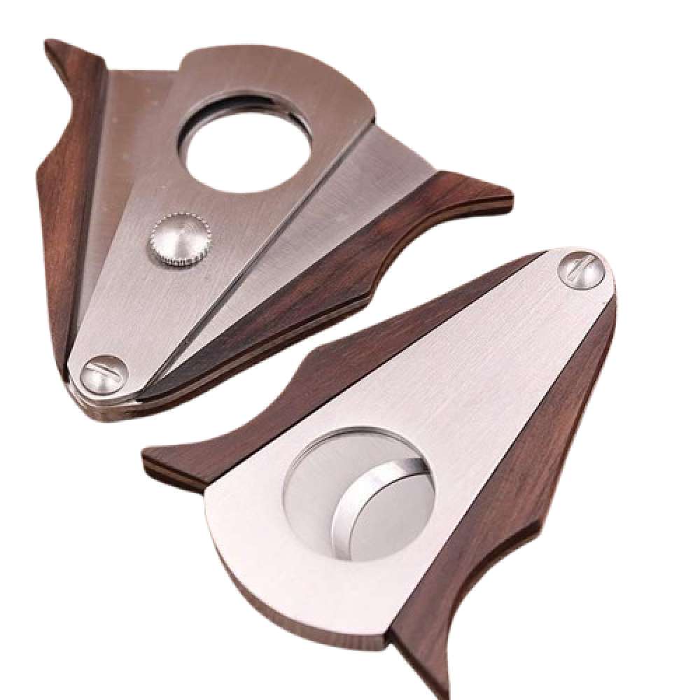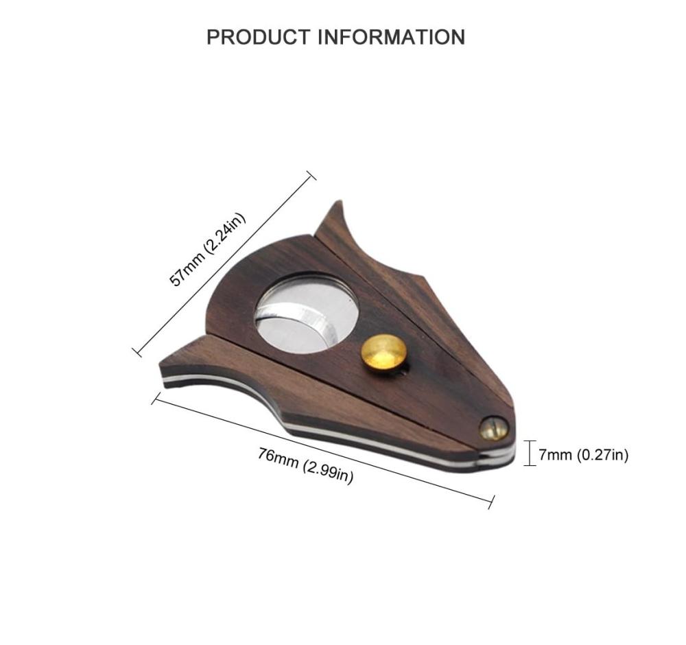 المواصفات:مصنوع من مادة الخشب & مادة الستانلس ستيل المقاوم للصدأالأبعاد: 72mm * 54mm * 7 mmقطر: 21mm (cuts up to “54 ring gauge)
