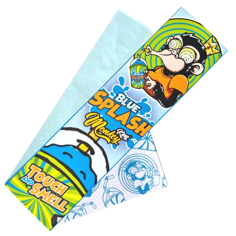Monkey King® BLUE SPLASH Papers and Tips in Touch & Smell booklet. This is very practical because the booklet is touched when rolling. And the smell of the weed that clings to your fingers is masked by the scent of summer strawberry sorbet!
