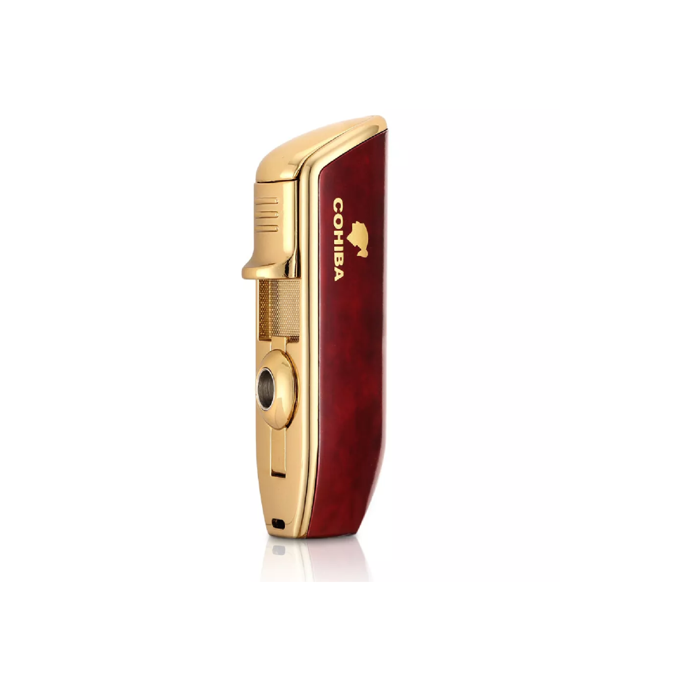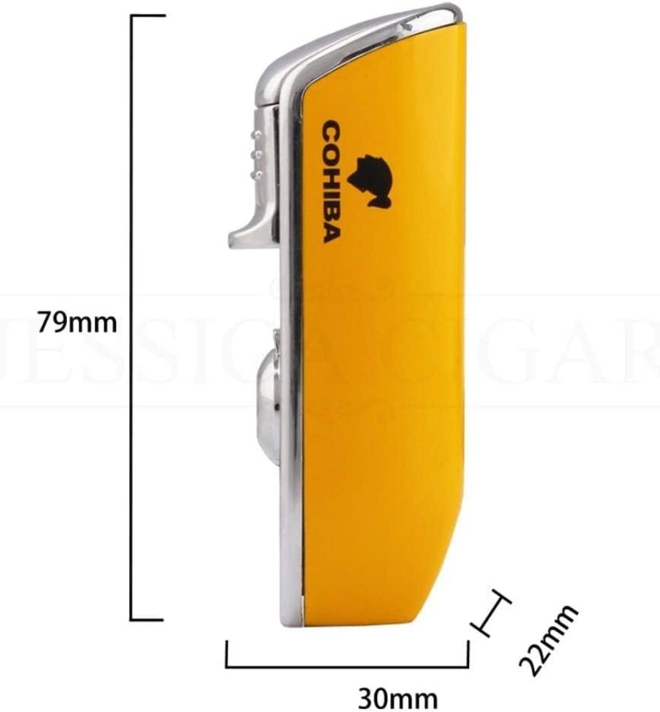 Specifications:Material: MetalFlame Type: Jet FlameDimensions: 79mm * 30mm * 22mmFlame: Triple FlameBrand: CohibaLighter Weight: 82g