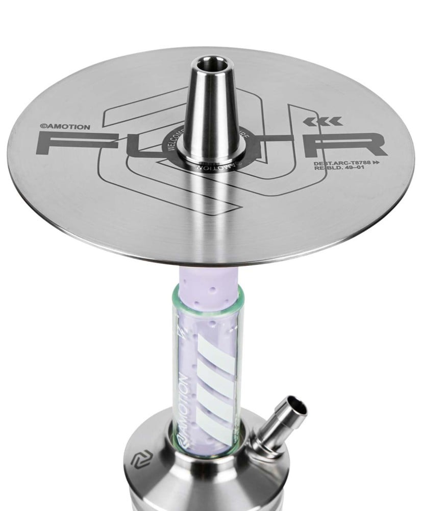 Amotion has released their first larger hookah on the market with the FUTR. After initially attracting attention with their small travel hookah Roam, they have now managed to win over a broader audience with their second pipe. Many describe the smoking behavior of the hookah as uniquely smooth, and it also has an impressive appearance, as the familiar soft-touch material from the Roam meets a futuristic graphic design this time.