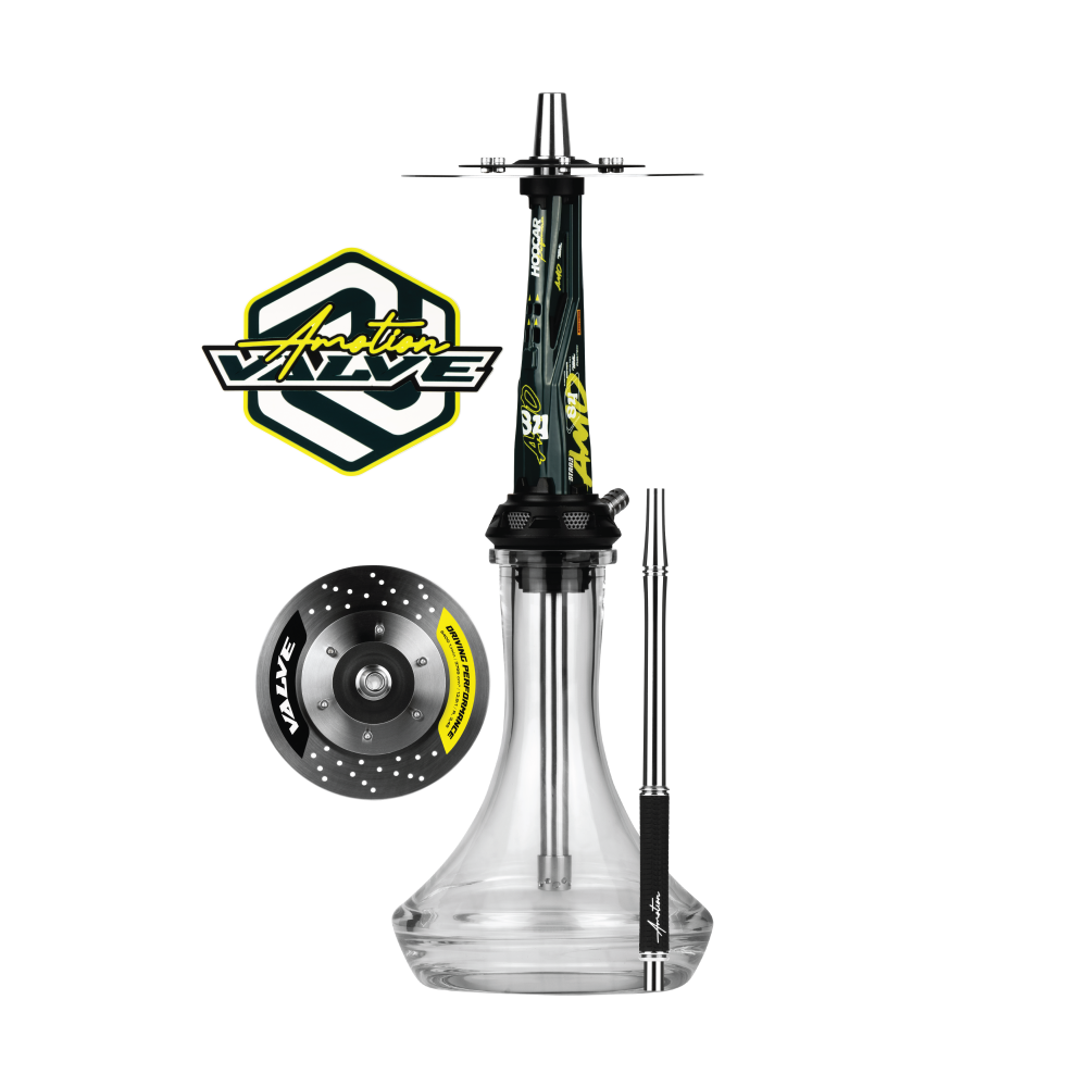 The hookahs we develop under the Amotion brand are designed to impress our customers in every way. This starts with fundamental aspects like smoke performance and extends down to the finest details of the design. Standing at a height of 52 cm, the Amotion Valve is the first “large” hookah from the Amotion brand.