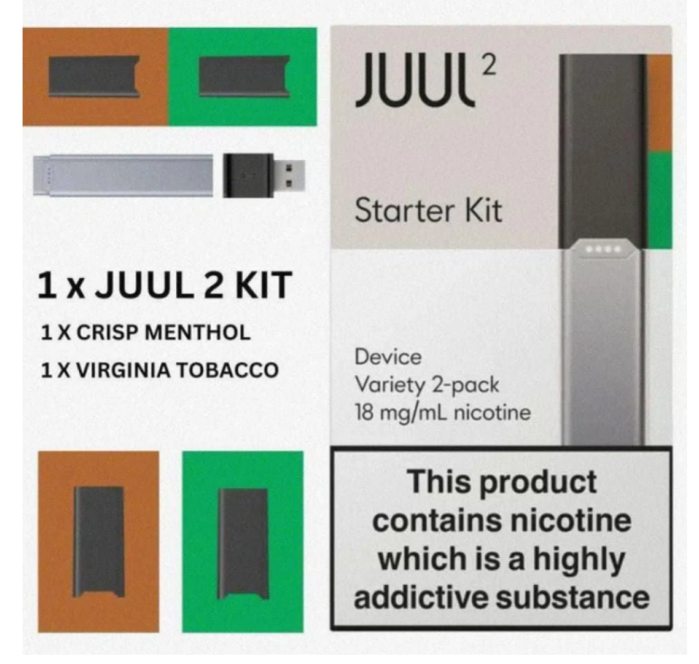 The JUUL 2 Starter Vape is the upgraded version of JUUL, offering a variety of flavors for a personalized vaping experience. It features an LED light indicator to display battery levels, e-liquid, and nicotine strength of 18mg/ml per pod. Compatible with the JUUL app.